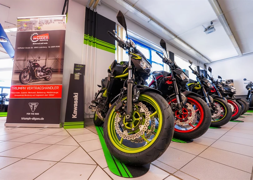 Seit 1980 - also seit 40 Jahren - sind wir anerkannter Partner der Bikerszene. Wir haben uns auf die Marken SUZUKI, KAWASAKI, TRIUMPH und VESPA spezialisiert. Im Bereich Fahrerausstattung sind wir Franchisestützpunkt von MOTOPORT. Großzügige, moderne Geschäftsräume mit über 1200 qm sind die Basis für übersichtliche Warenpräsentation und reibungslosen Werkstättenbetrieb.